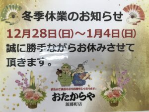 今年も当店をご利用いただきまして誠にありがとうございました。